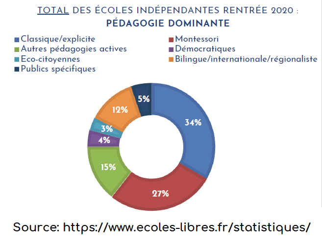 Modalités de comptage: selon le discours d’Emmanuel Macron du 2 octobre 2020 et le Ministère de l’Éducation nationale, il y a en tout 12,4 millions d’élèves scolarisés en France (établissements publics et privés sous contrat et hors contrat). Au sein de cette population scolarisée, les écoles privées hors contrat (autrement dit, celles qui ne suivent pas le programme de l’Éducation nationale) représentent 74500 enfants, soit 0,60% du total de la population scolarisée. (source : www.ecoles-libres.fr )
