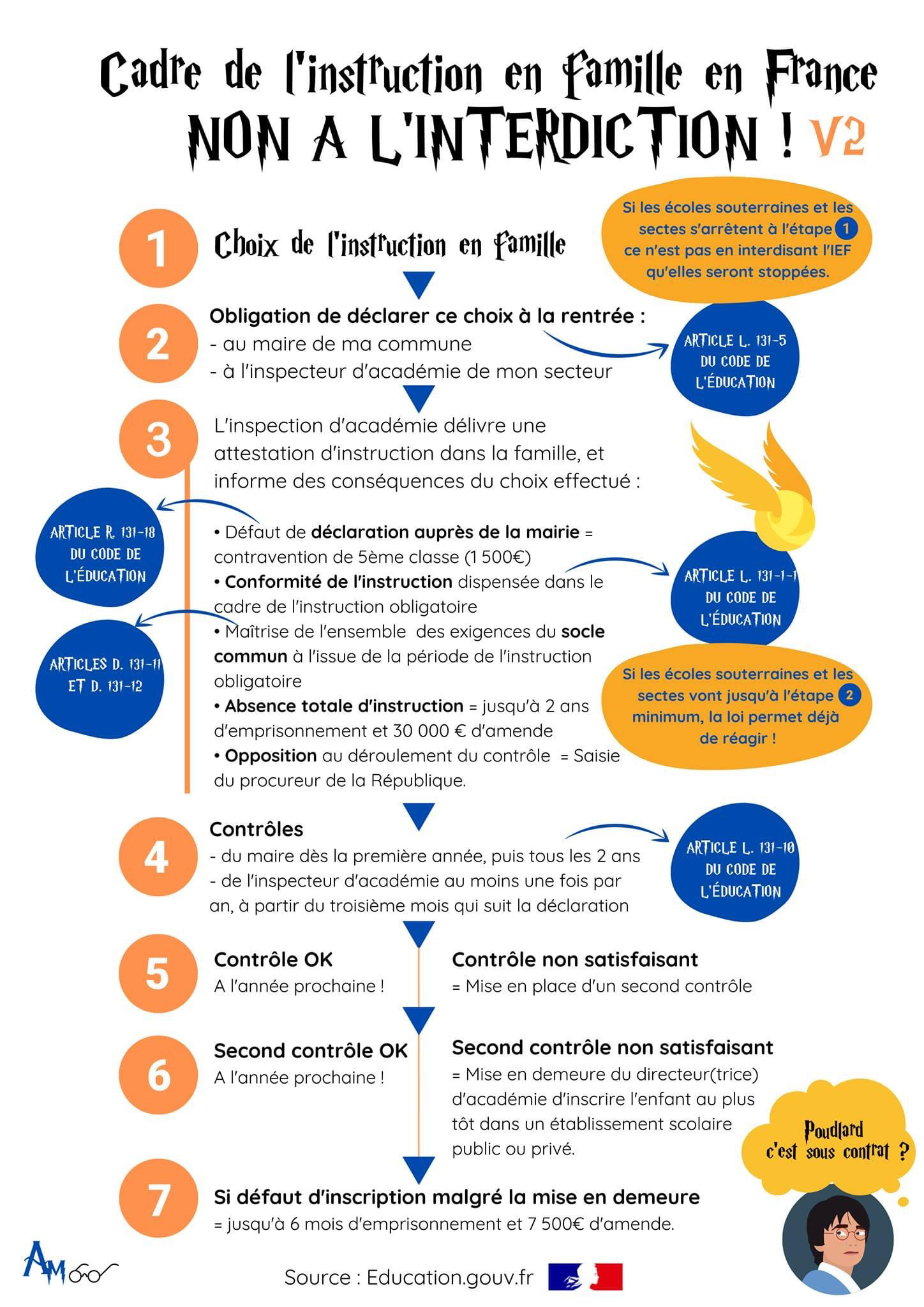L’instruction en famille représente 50000 enfants dont 25000 au CNED (contrôlés et évalués par du personnel enseignant de l’Éducation nationale).