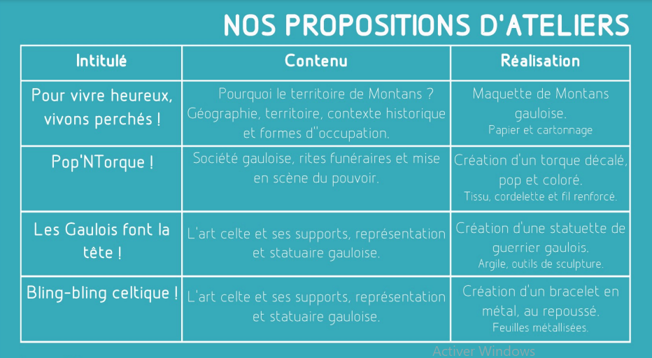 - Jeudi 9 mars : « Pop N’Torque », création d’un collier gaulois.