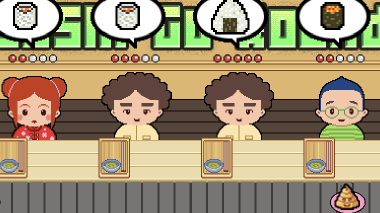 Un petit jeu de restaurant où il faut servir des sushis à des clients. Jouable par des enfants, avec une petite musique entêtante.