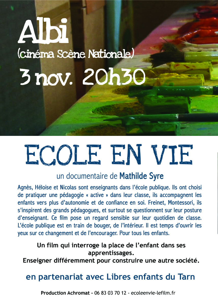 Novembre >>> Ciné-rencontre « L’école en vie »+ Rencontre parents-enfants « Maternage & entourage »